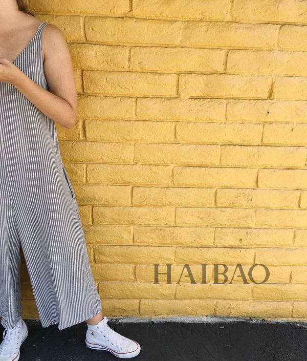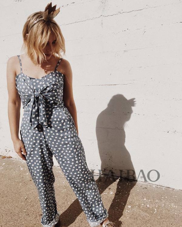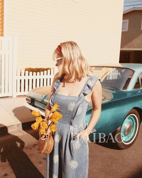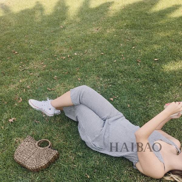 吊带连体裤也是衣橱常备,竖条纹的款式最显瘦,碎花的款式也很适合夏天。