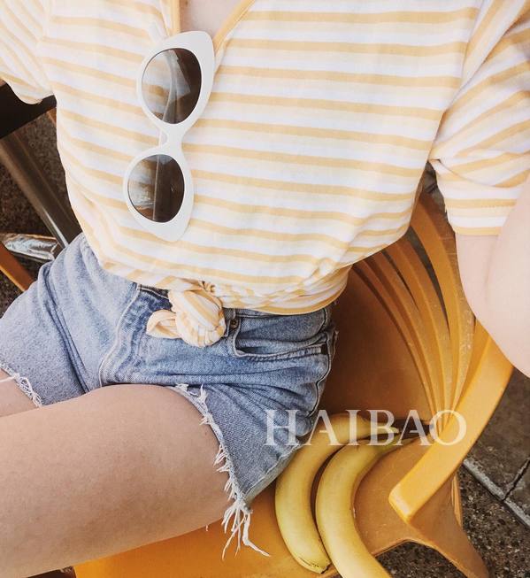 适当露肤才是夏天该有的样子,一字肩的款式露出可爱的锁骨,不经意间散发着迷人的气质。短打上衣在夏天穿最合适啦,就算有一点小肚腩,大胆露出来也是可爱的表现哦。