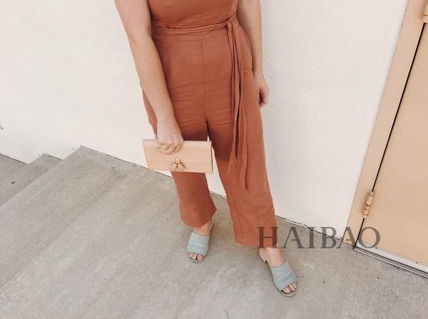吊带连体裤也要备上几条,想偷懒的时候不用思考穿什么,一件吊带款的连体裤清爽又吸睛!