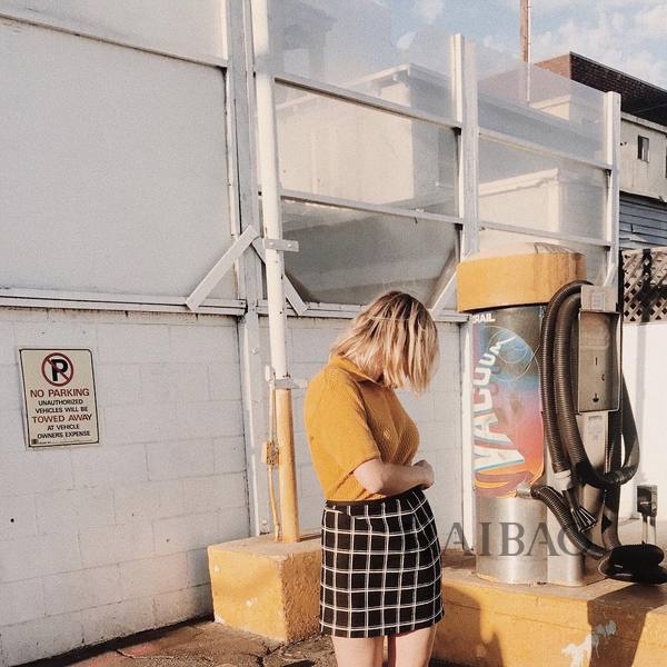 格纹元素经典不衰,格纹短裙搭配姜黄色Polo衫,又做回了那个清新文艺的少女。