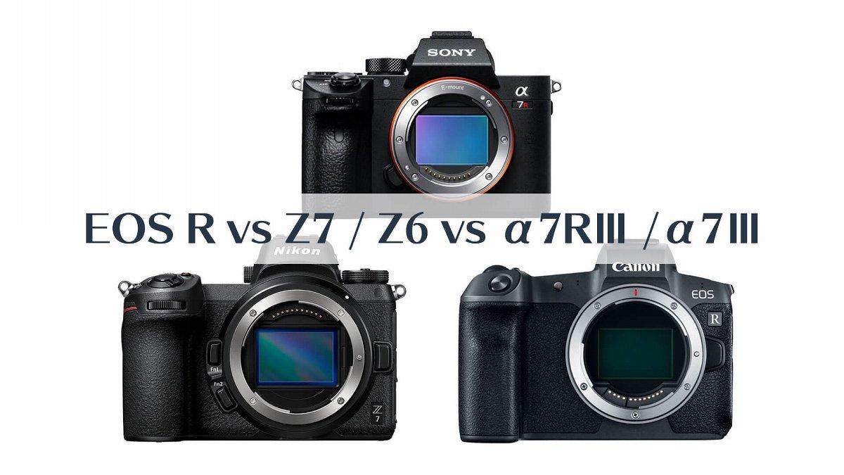 索尼 A7III(上)、尼康 Z7(下左)、佳能 EOS R(下右)体积对比