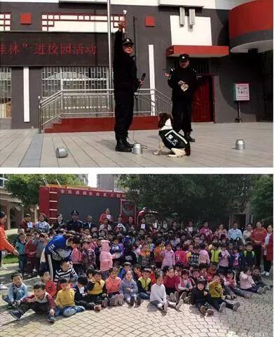 3月22日、23日,桂林市公安局叠彩分局组织民警走进辖区幼儿园和中、小学校开展平安宣传活动民警通过队列和擒拿格斗、警犬和防爆恐表演、车安网与你同行演示等多种不同表演,提高学生防范校园欺凌、*品毒**、被拐骗和防火、防盗、防抢意识。