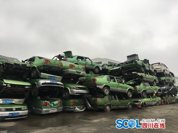 四川在线消息(记者 邓童童)9月5日上午10点,随着一辆辆仿冒出租车经过入场验收、危废物预处理、车辆分型拆解、废钢破碎加工、产成品分类等生产作业流程,被一一拆解,成都市交委、市公安局、市财政局联合在龙泉驿区成都兴原再生资源投资有限公司对近年来查扣的426辆仿冒出租车进行了公开集中报废处置。