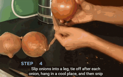将洋葱和大蒜放入长统*袜丝**的袜筒中