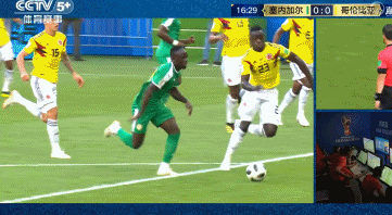 第12分钟,哥伦比亚获得前场任意球,金特罗左脚直接轰门,皮球直奔球门左下角,恩迪亚耶把球扑出底线。