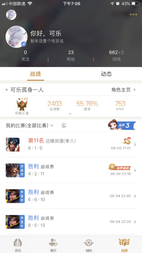 Hello,大家好,我是可乐,一个热爱王者荣耀的男孩。简单介绍我自己:自从S7开始接触王者荣耀这款游戏开始,就在使用刘备(可能是玩多了的缘故吧;嘻嘻),前前后后使用刘备一千多场。喜欢单排,连续五个赛季用刘备单排上荣耀。(实力还有待提升希望各位看官轻喷)