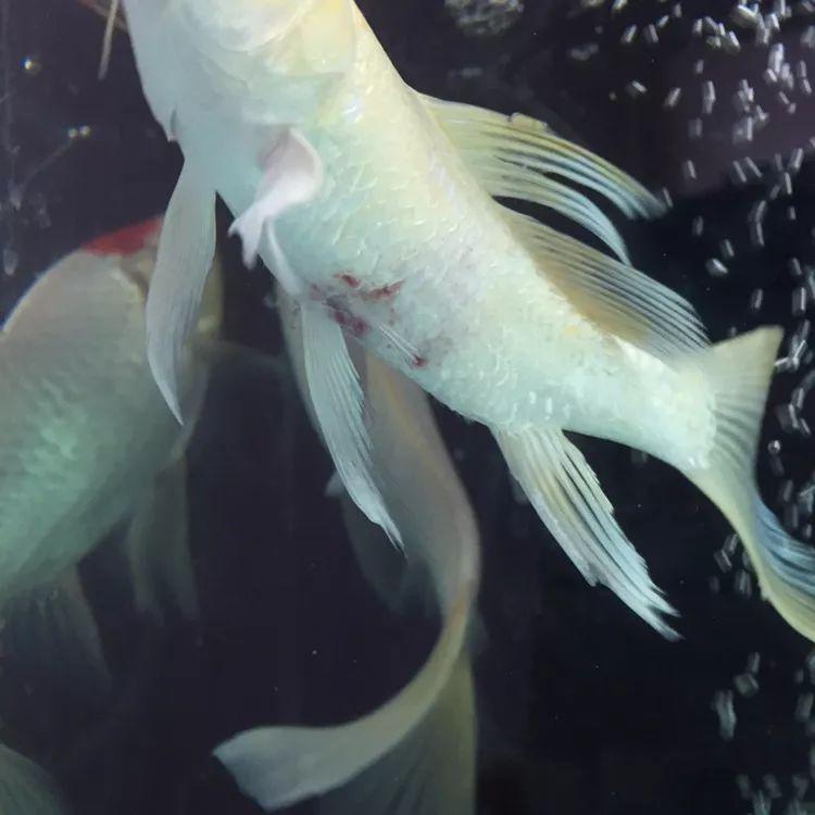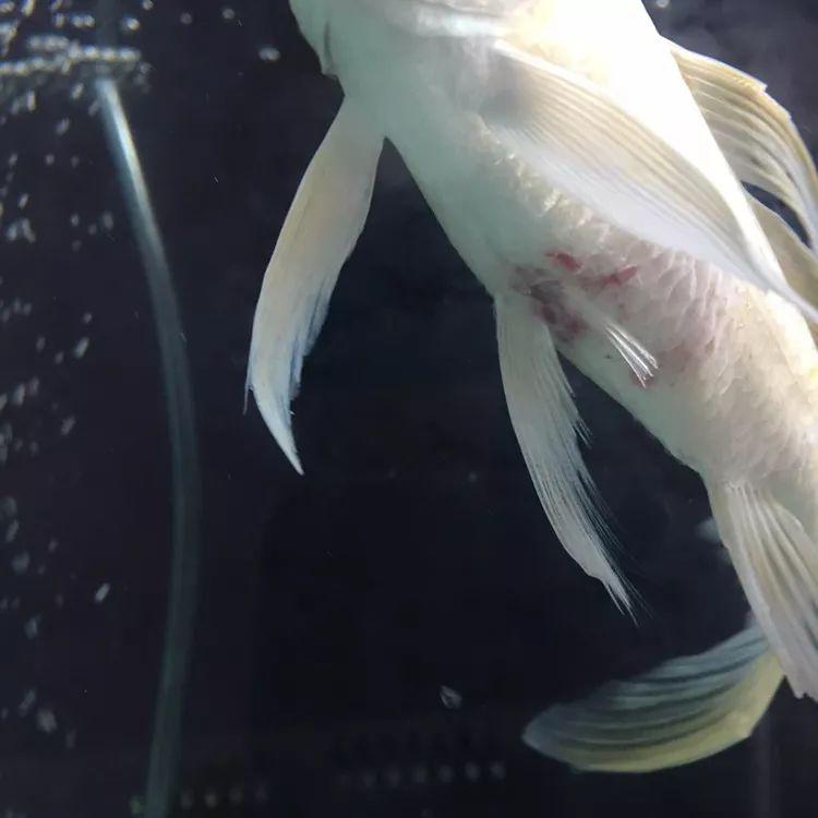 就这样又坚持了大概一周,从外面看伤口还是没有好转迹象,期间鱼出现趴缸缩鳍现象,