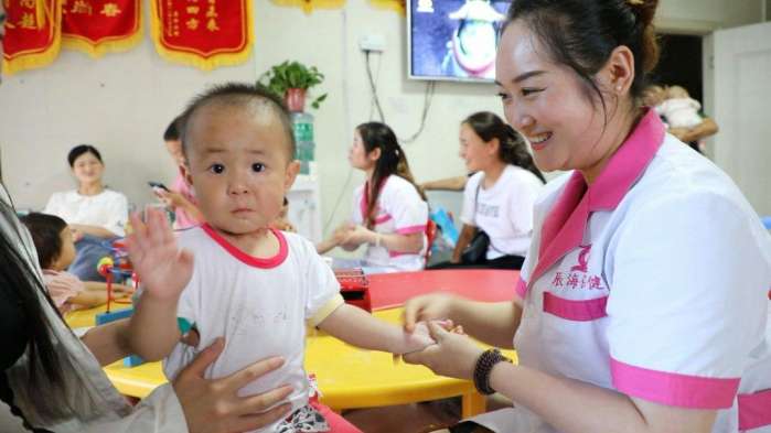 李海滨告诉记者,越来越多的家长了解到抗生素的危害以后,表示不愿意让自己的孩子遭受病痛折磨的同时还深受抗生素的危害。随着健康绿色疗法——小儿推拿的普及,以及亲眼所见小儿推拿的显著疗效,家长们纷纷在孩子生病的时候前来推拿,有很多县里甚至外地的家长也会抱着孩子前来就诊。由于辰海保健服务有限公司开设在驿城区水屯镇七组七号,这对就诊的患儿和家长造成极大的不便,因此李海滨就尽快筹备资源,先后在驿城区莱茵湖社区、公牛运动城成立辰海保健儿童健康管理中心,并开设小儿推拿培训班,培训一批又批合格的小儿推拿保健师,极大限度地解决了宝妈上岗再就业问题。