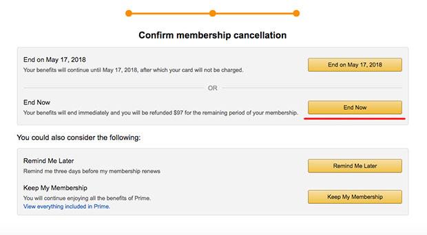 当然你也可以直接选择中间的「End My Benefits」按钮,这个时候系统可能会作最后挽留你的最后努力,表示取消后各种免费的视频、音乐都不能看了之类,只要坚决地点取消就好了。