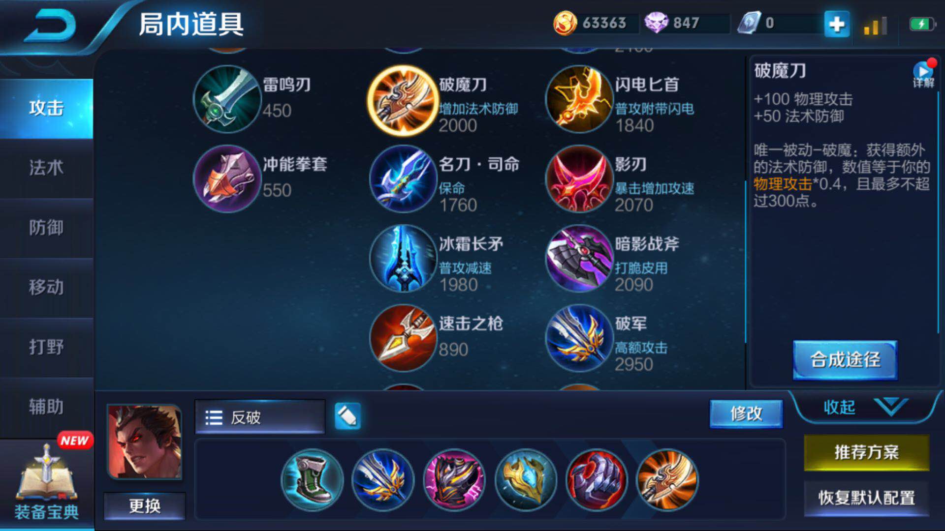 出装,抵抗鞋,破军,爆烈之甲,极寒风暴,血魔之怒,破魔刀