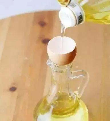 家里的食用油在用的时候,通常需要把油装入小口瓶子里,可是如果一时找不到漏斗怎么办呢?我们可以用鸡蛋壳来代替。把蛋壳洗干净,在一端打一小孔,鸡蛋壳就变成一个小漏斗啦~