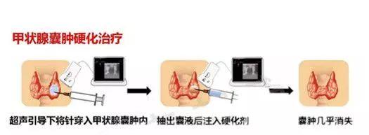 ——肝囊肿、肾囊肿、甲状腺囊肿等可在超声引导下,抽出囊液后注入硬化剂,使囊肿逐渐缩小消失。