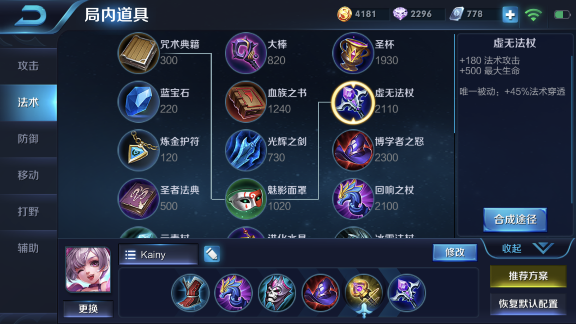 如果对面有强回复的英雄(例如程咬金、貂蝉等),可以考虑用梦魇之牙替代回响之杖。