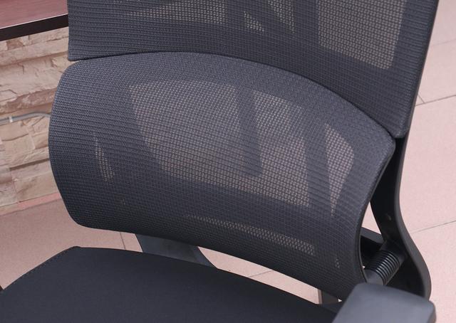 靠背底部特写。由于靠背是直接安装在底盘上的,与坐垫同升同降,靠背高度不可调。
