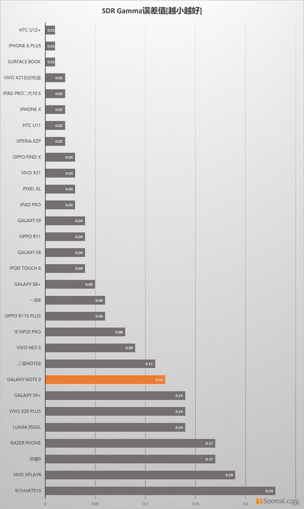 SAMSUNG 三星 Galaxy Note9 智能手机 - 屏幕测评 - Gamma2.2排名[sRGB]