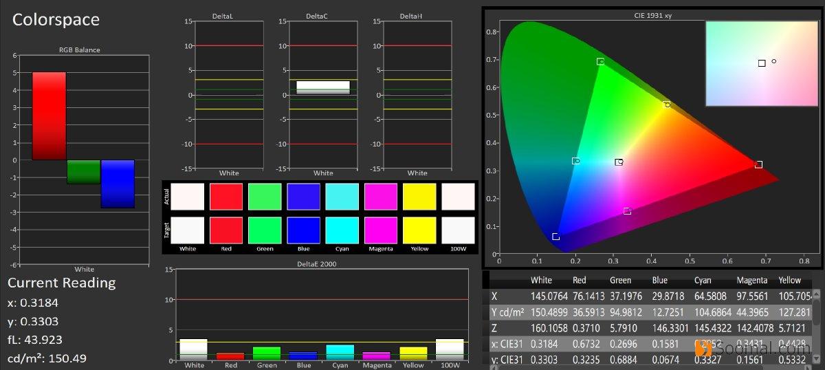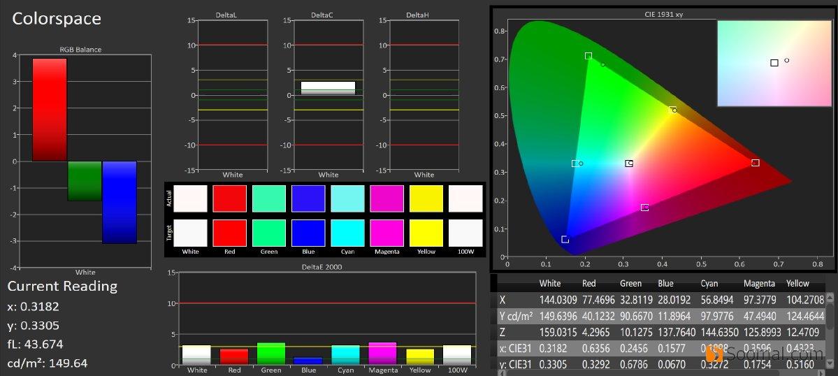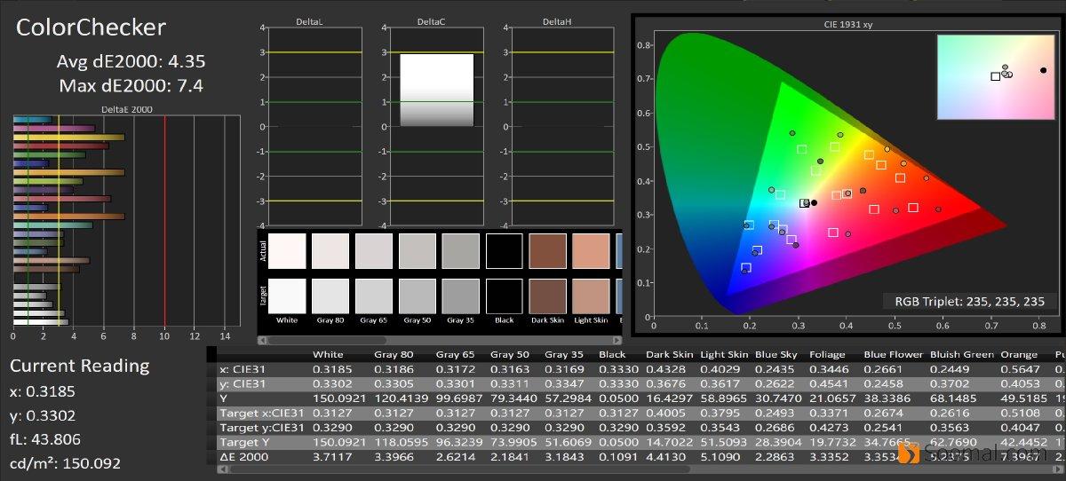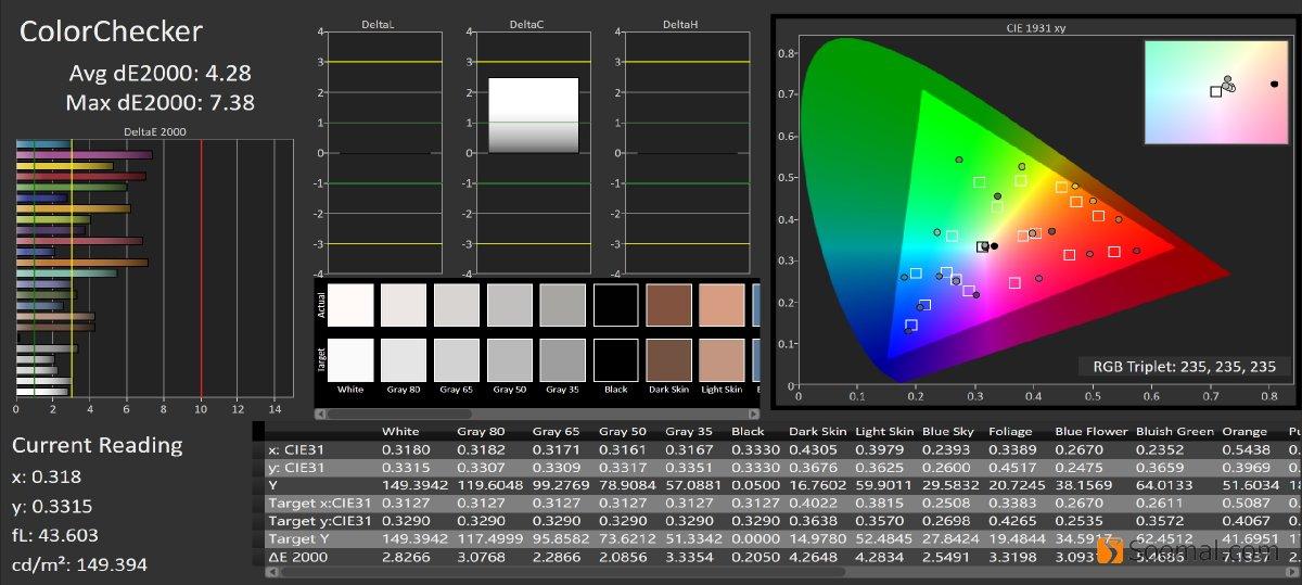 | 平均灰阶偏离,ΔE | 3.2 | 2.15 | 2.2 | 2.4 |