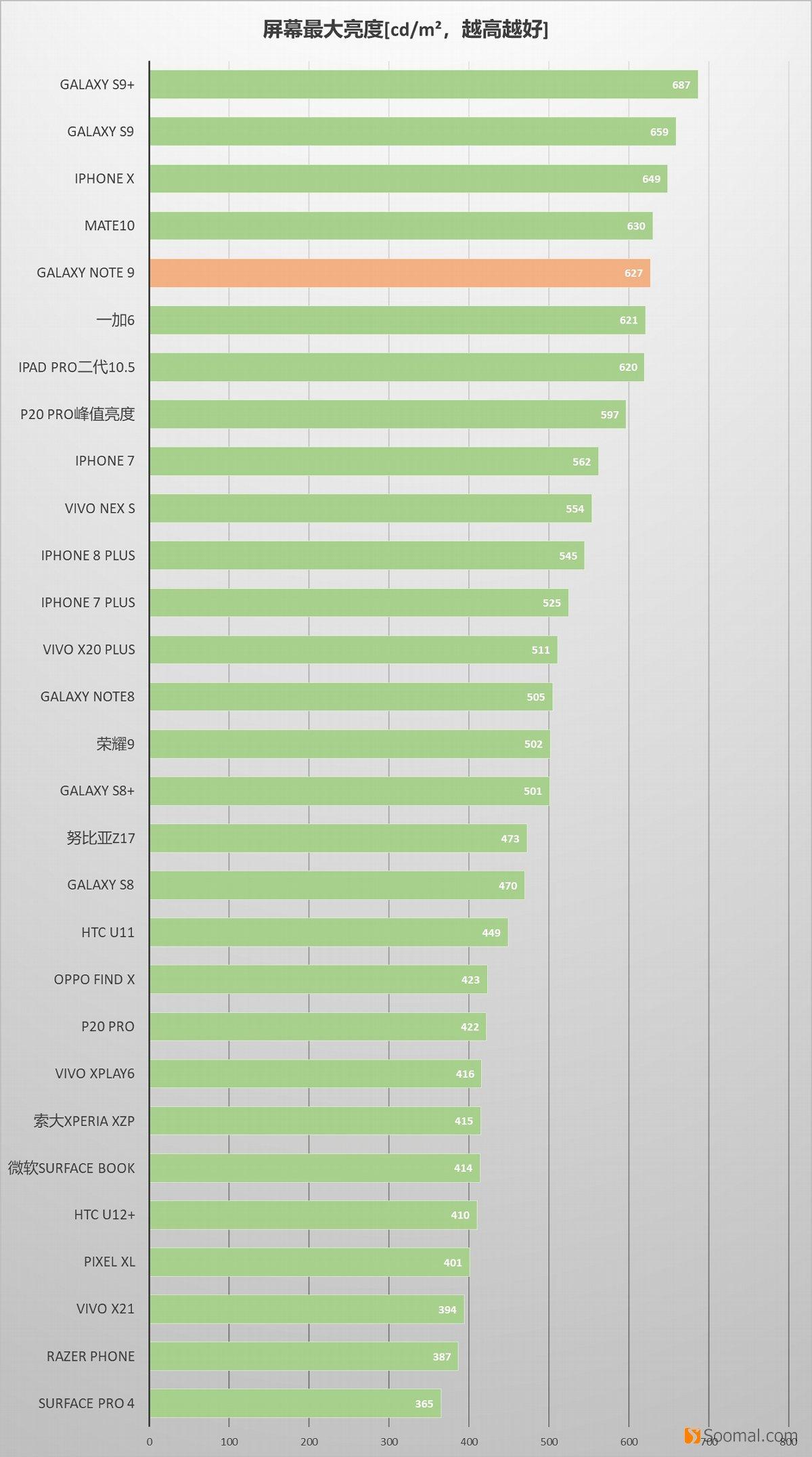 SAMSUNG 三星 Galaxy Note9 智能手机 - 屏幕测评 - 亮度排名