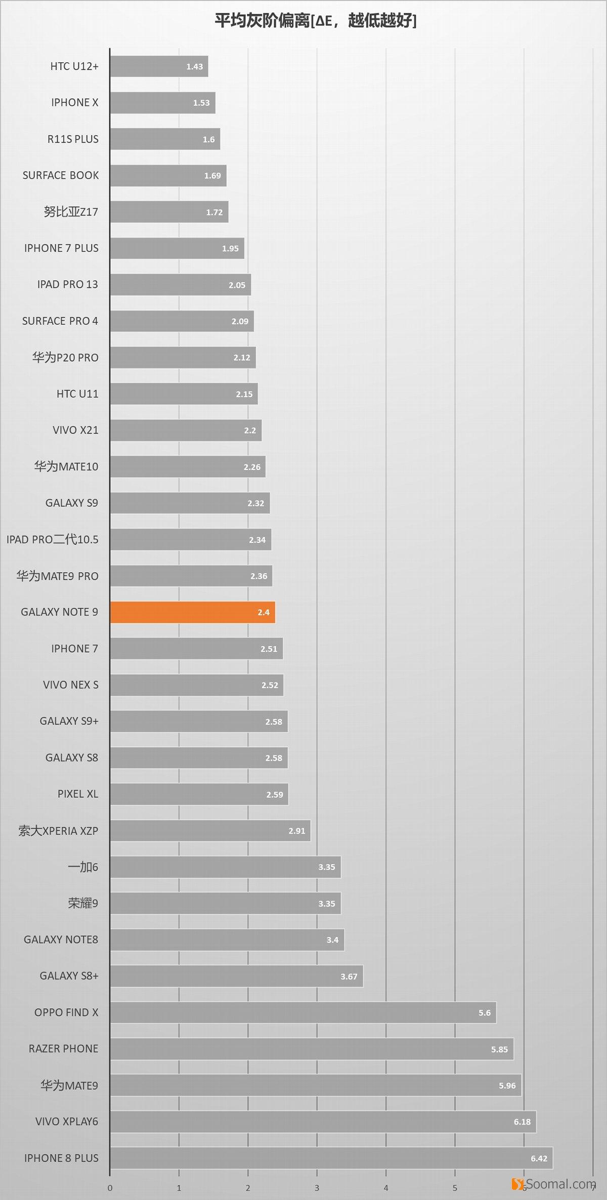 SAMSUNG 三星 Galaxy Note9 智能手机 - 屏幕测评 - 灰阶排名[sRGB]