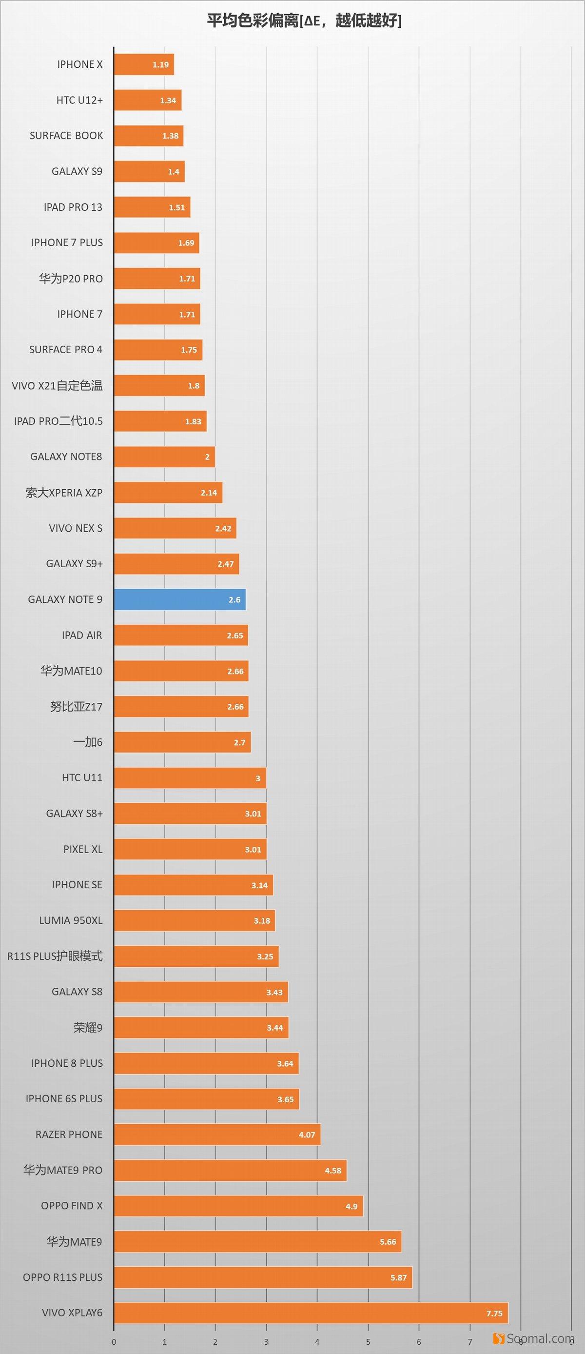 SAMSUNG 三星 Galaxy Note9 智能手机 - 屏幕测评 - 色准排名[sRGB]