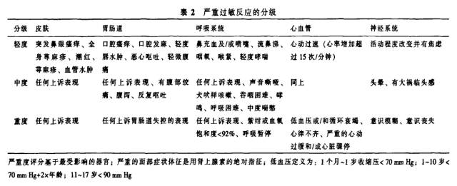 图四:严重过敏反应的分级(参考文献2)