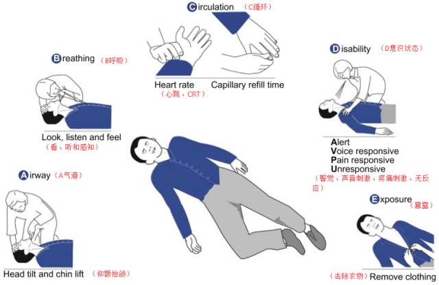 包括:气道、呼吸、循环、意识和暴露;