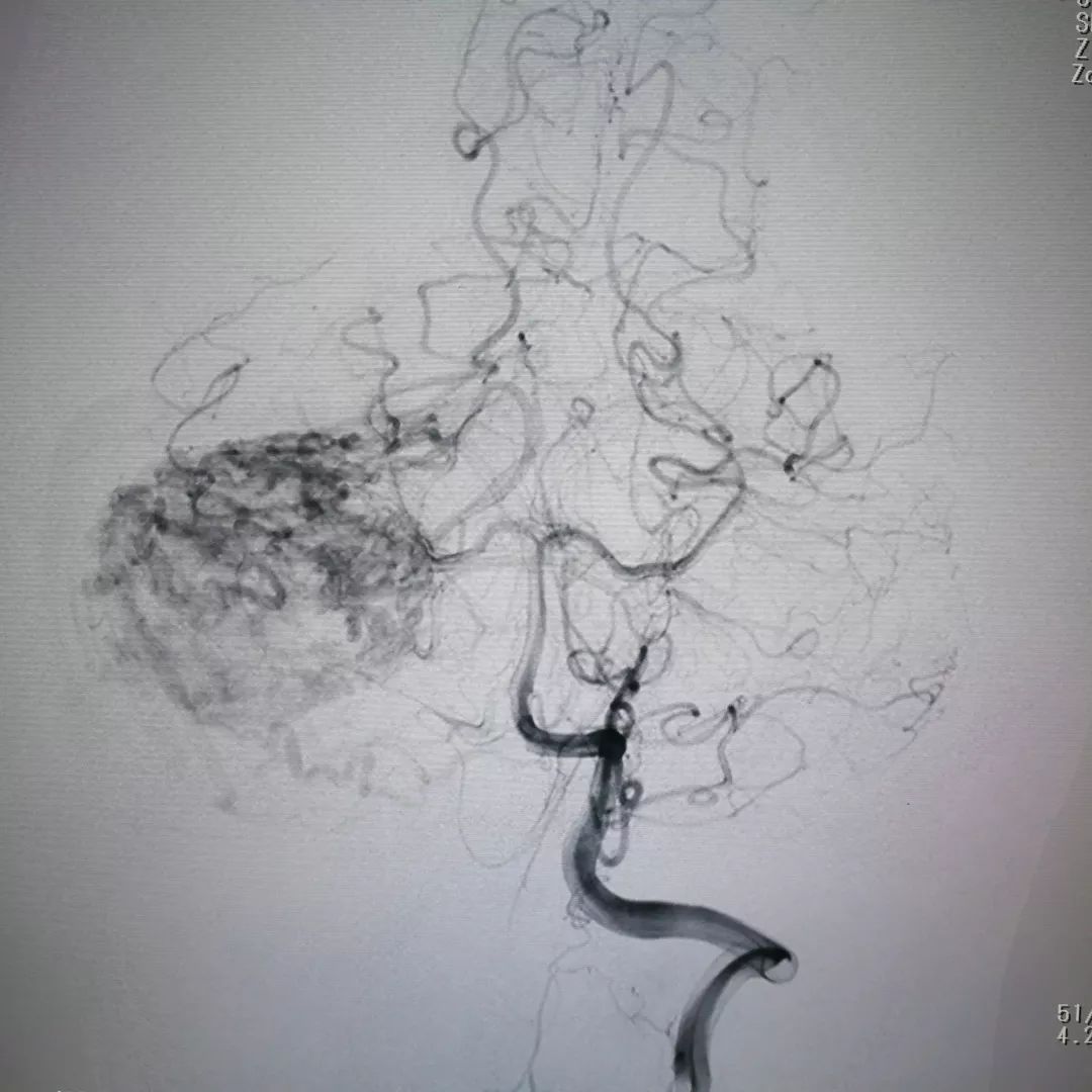 脑血管造影证实肿瘤血供极其丰富,血窦样结构充满血液,供血动脉粗大