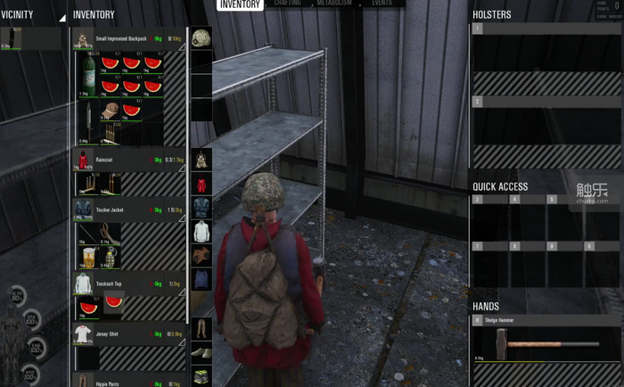 前文已经强调过,《人渣》和《DayZ》一样具有相当真实的模拟生存系统,制作组很精准地把握住了生存游戏玩家的喜好,并有意强化了这一部分。如果说《人渣》能靠什么留住硬核生存玩家的心,那只能是游戏中繁复而无处不在的生存细节——虽然一款游戏的系统过于复杂未必是一件好事。