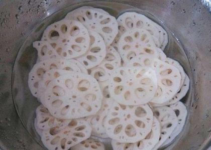 《添加白醋》准备一个干净的大盆,然后把莲藕片放入盆中,接着往盆里倒入适量的清水,将莲藕片覆盖住,然后往凉水中加入几滴白醋,把莲藕放在一边浸泡一会儿。这样做酸性物质能够抑制多酚氧化酶的催化作用。使莲藕不会发黑变色,还能保持洁白的颜色。