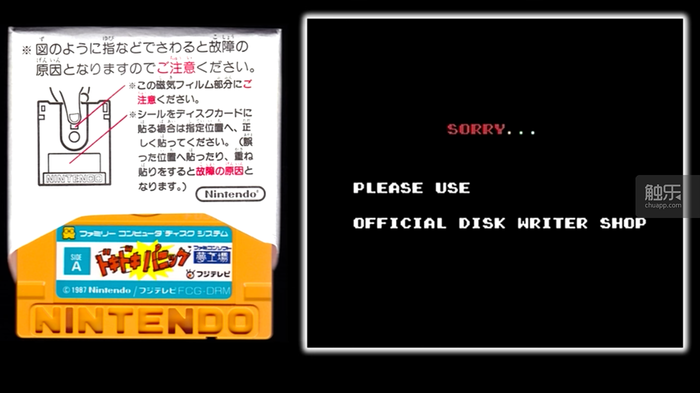 比如在任天堂制作的富士TV周边游戏《梦工场ドキドキパニック》中,如果检测到不是原版游戏,也不是在Disk Writer上拷贝的游戏,会出现“请使用官方Disk Writer商店”的提示语。