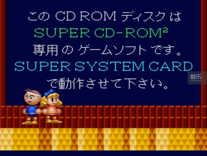 走到关底看到的文字,大意为:“此CD-ROM光盘是SUPER CD-ROM²专用游戏软件,需要SUPER SYSTEM CARD搭配使用。”