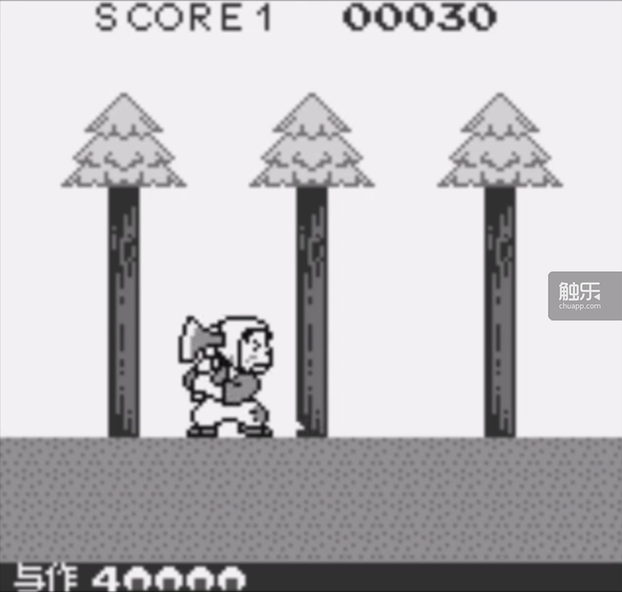 《拳皇:天堂之战》(The King of Fighters Battle De Paradise)是一款类似《大富翁》的桌牌游戏,游戏使用了“拳皇”里的角色,但内容与格斗毫不相关,非常轻松向。本作的开发人员就在这款NGPC游戏里藏了一个相当有历史意义的迷你游戏,如果把游戏卡带插入到NGP里开机的话,本来无法使用的卡带却会运行一款迷你的砍树游戏,而这款砍树游戏实际上大有来头。