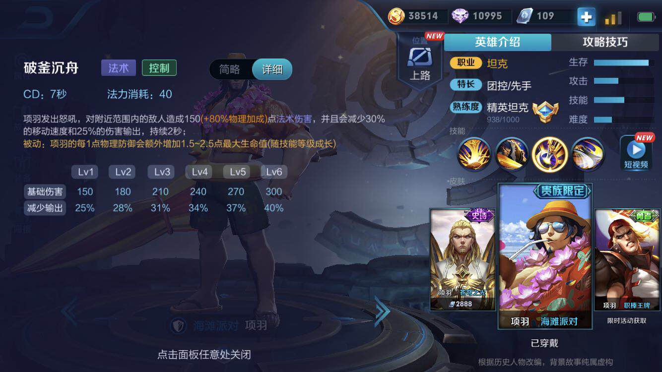 项羽的二技能加满后,会让身边敌人的输出伤害减少40%,加上弱化的50%减伤就是90%减伤。