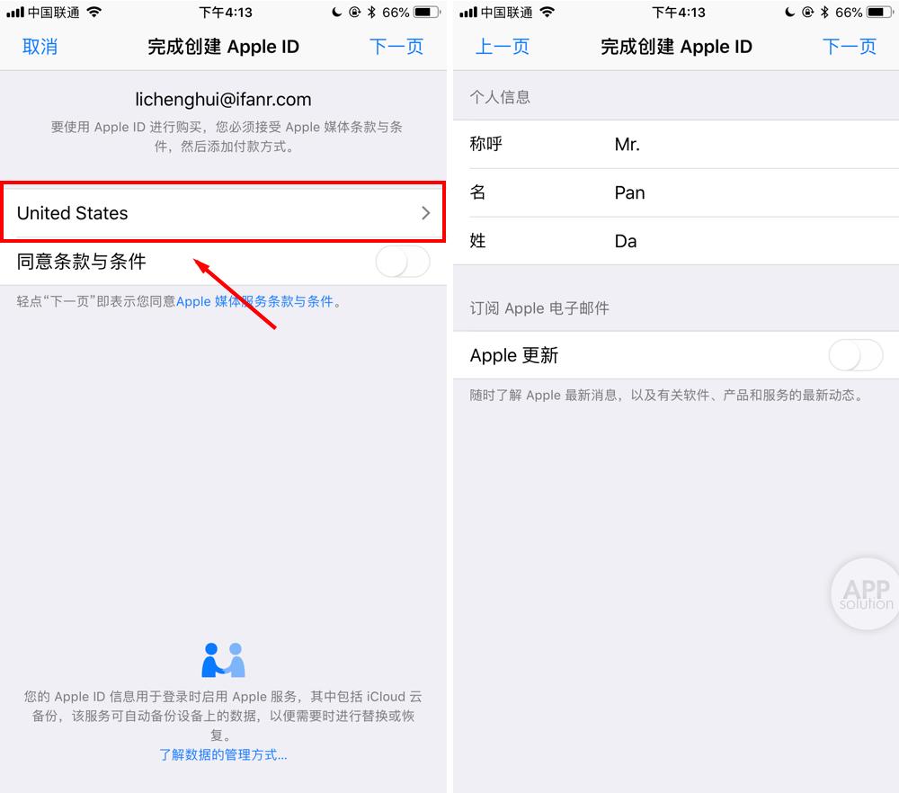 在新页面中,关注查看地区是否为 United States,如果不是需要手动切换至 United States,打开「同意条款与条件」后点击下一步,按照提示填写信息。