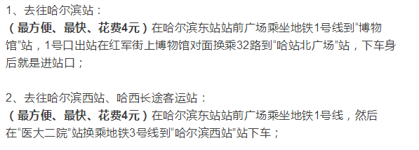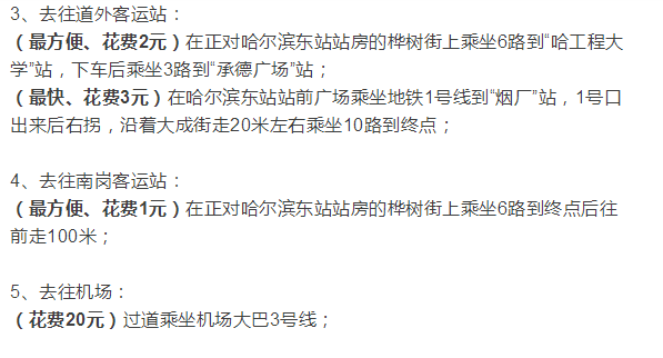 5、去往南岗客运站:乘坐机场大巴哈站线,然后在北广场首末站换乘便堵车环线到“哈站(龙门大厦)”站下车;