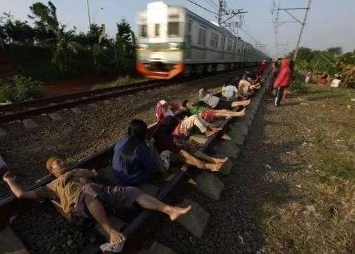 在印度尼西亚,“卧轨电疗”十分流行。人们横躺在两条铁轨上,等待列车接近时发出的电流穿过身体,然后在列车靠近前迅速离开铁轨……