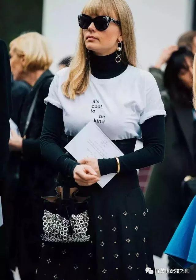 27、T恤+高领打底,混搭且有层次感。▼