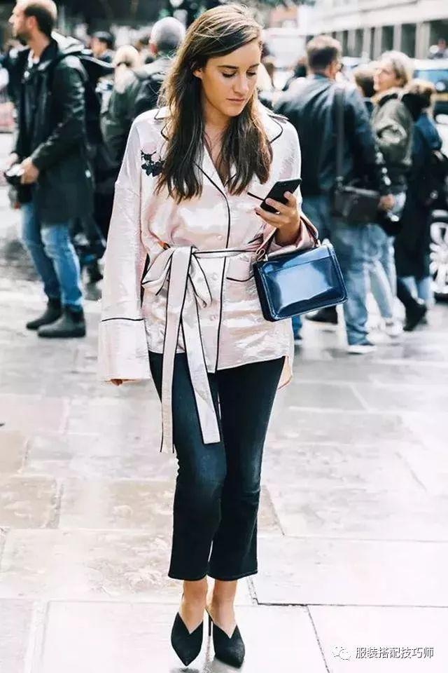 49、紧身上衣+阔腿裤会打造小腰精的感觉。▼