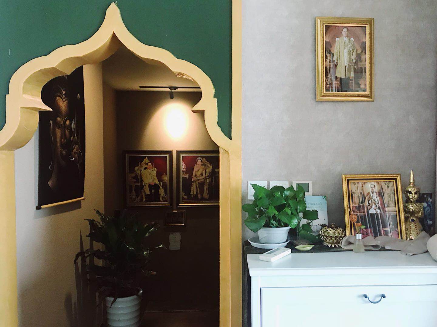 一楼主要是以足疗为主,我提前预约了一个泰式的全身按摩,被前台妹妹直接带上二楼。处处可见的泰国皇室照片,很高贵啊。