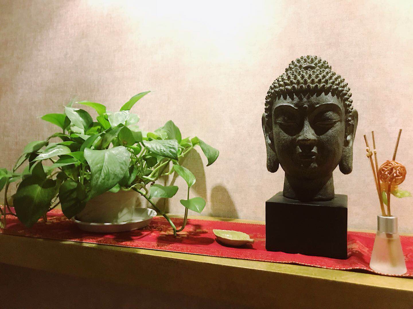 旁边小台上的佛祖一脸慈祥,嗯,原本激动等待按摩的心灵也慢慢平静下来。