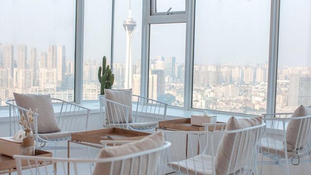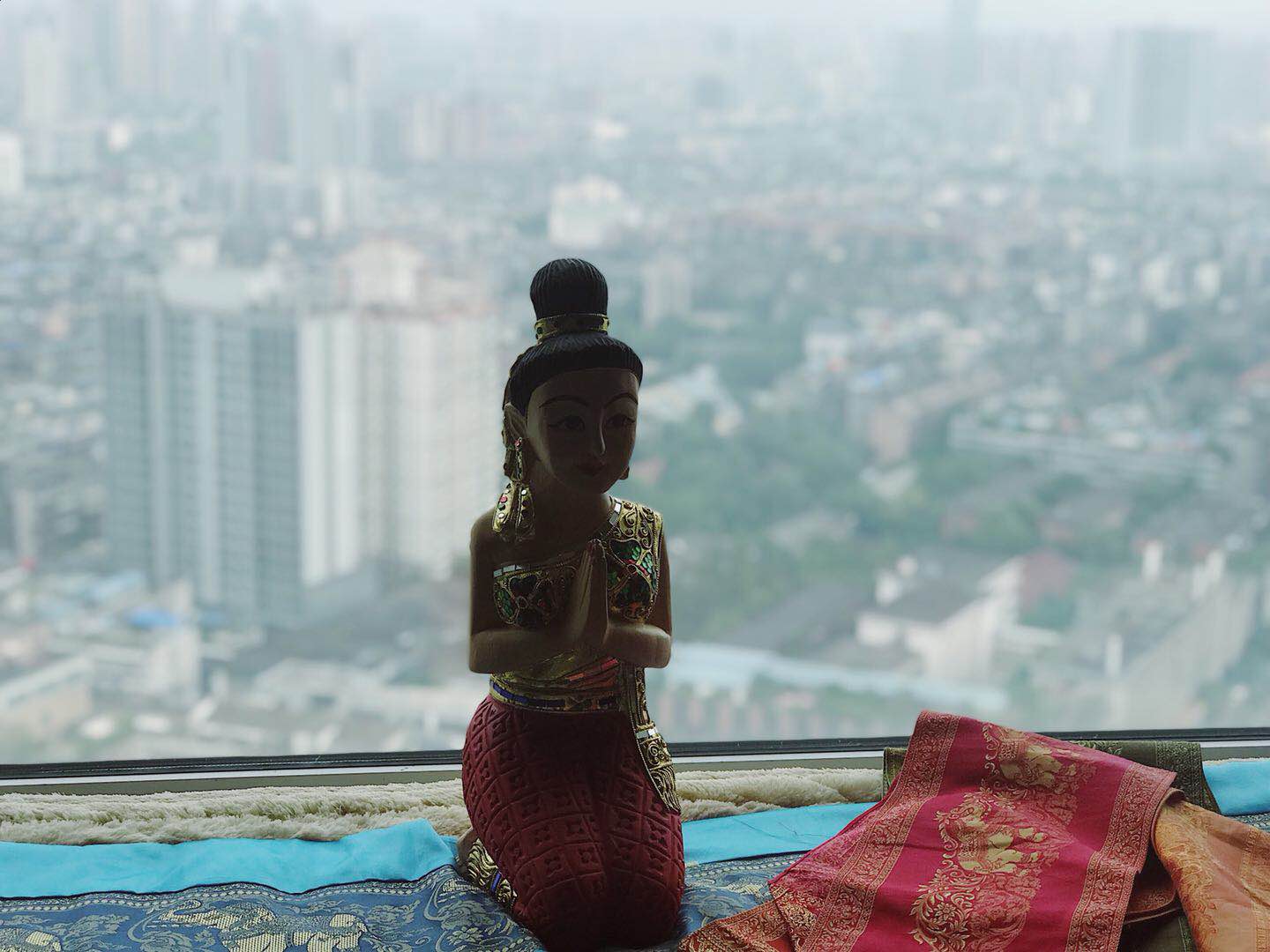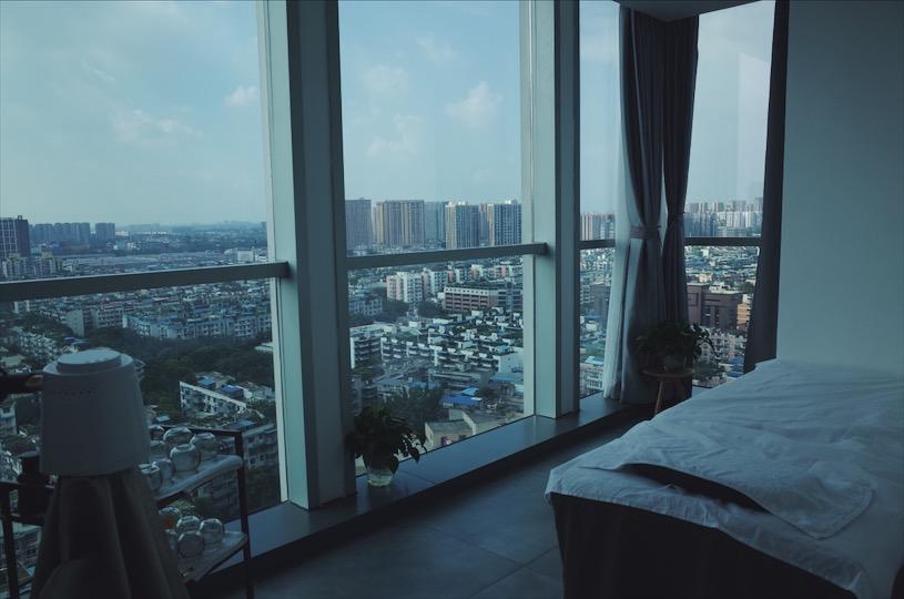 所有来这里按摩的人,都会径直走向这个三面环境的窗台,41楼的视角太值得拍照炫耀了,成都的一景一物就像是房间里自然的壁画一样。