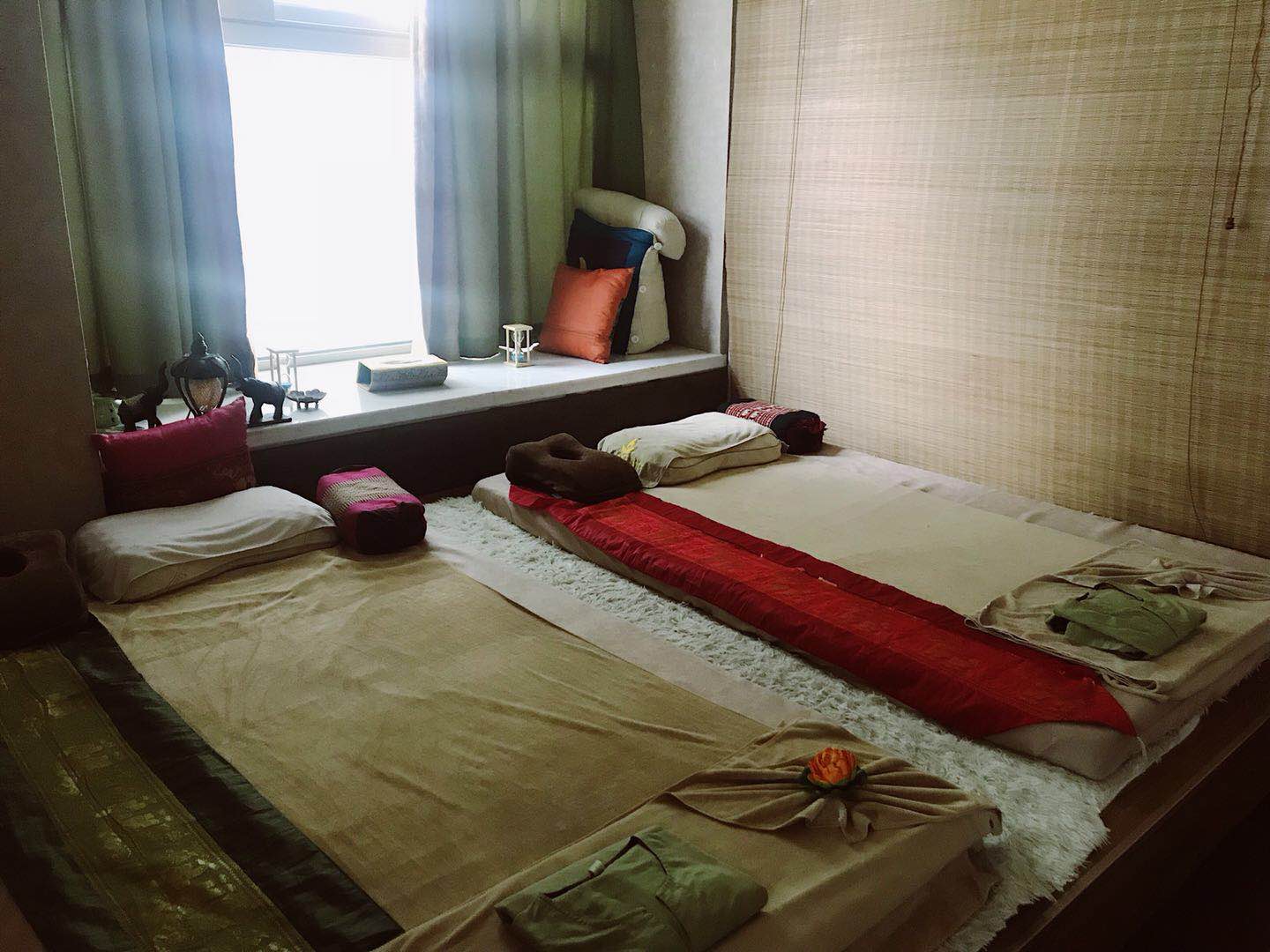 绿色的帘子,可以隔出单人间也可以变成双人间,灵活多变,适合朋友和情侣之间。泰国阿姨的手法还是到位,从脚到背的顺序,再回到脚,不断地推压,一点点拨开。听着声音很小的舒缓轻音乐,整个人很容易就放松了。