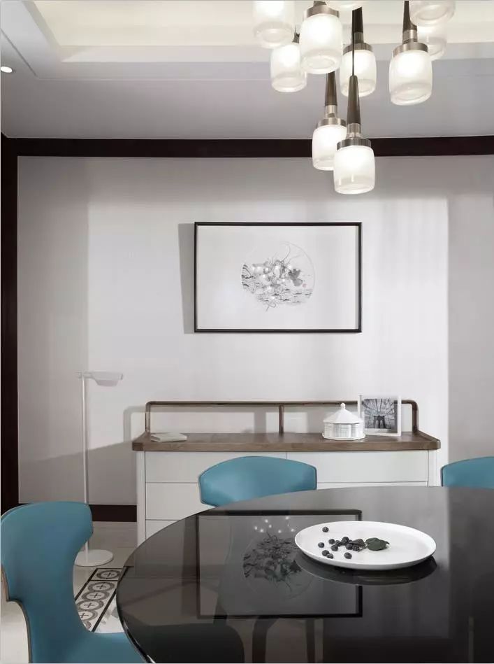 面向餐厅的厨房门采用外推拉门,可将推拉门隐藏到入户门后,打开时高效地节省了平开门可能占用的空间,关闭时又不影响厨房的正常使用。厨房尽量采用沿墙全周布局,尽可能延伸组合柜台的工作面,同时把最需要自然采光的洗碗池放置在窗边,使整个空间高效便捷。同时通过预留了双开门冰箱的位置,洗碗池和洗碗机一体设计等,让科技带来的高品质生活成为可能。整体橱柜采用原木色底柜配合白瓷色上柜,使厨房空间温馨且干净整洁。