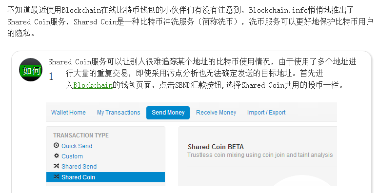 之前有家网站推出了一种“shared address”的钱包服务,而shared address顾名思义,共享地址,公共地址,让*币特比**在共享地址里面转一圈。。到时候黑的白的都会搅在一起。