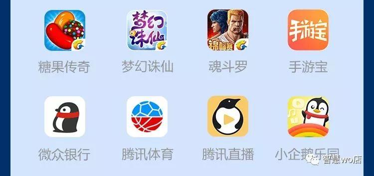 微信、手机QQ、QQ轻聊版、TIM、QIM、腾讯视频、QQ音乐、应用宝、腾讯手机管家、QQ浏览器(包含第三方网站)、QQ空间、QQ邮箱、腾讯新闻、QQ阅读、腾讯微视、水印相机、腾讯动漫、QQ创意相机、QQ情侣、腾讯体育、看房、QQ影像、QQ提醒、易迅彩票、QQ美食、企鹅FM、腾讯操盘手、微桌面(主题壁纸美化)、Q立方桌面、快报、腾讯地图、微信电话本、手游宝、电池管家、QQ国际版、微云、相册管家、手机QQ影音、QQ彩票、NOW直播(腾讯)、腾讯桌面、腾讯充值、腾讯路宝、全民K歌、腾讯校猿、企鹅辅导、腾讯课堂、腾讯直播、小企鹅乐园、腾讯游戏人生、企鹅电竞、QQ同步助手、腾讯WiFi管家、企业微信、微信读书等其他腾讯系应用。