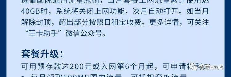 ·遵循国际通用流量原则,当月套餐上网流量累计使用达40GB时,系统将关闭上网功能,次月自动打开。如当月解除封顶,超出部分按照日租宝收费。