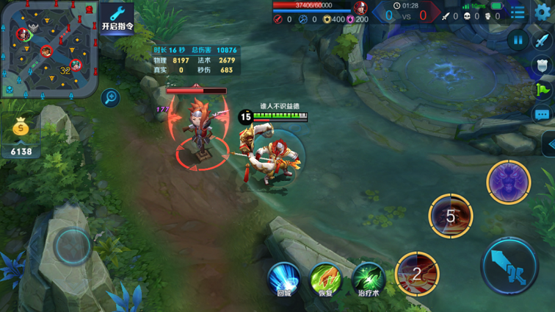 开团型连招:大招切C晕眩敌方,加速二技能砸向敌方C位打出AOE伤害减速敌方,一技能AOE伤害减速敌方,在通过物理伤害增幅的平A持续输出,待二技能冷却继续追击一技能。打满两套技能加平A伤害足以击杀对面任何一个脆皮。如上图变身以两套技能五下平A和红莲灼伤可对脆皮英雄造成8000+伤害,如果对面还手将被附加反伤刺甲的魔法伤害。