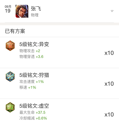这套铭文在输出和坦度上做到攻守兼备,由于张飞有两套技能异变可以更多的去增加技能输出和大招形态下的平A伤害以及影响护盾值。虚空的冷却缩减更高效的叠加狂意和在大招形态时间给你两套输出技能。狩猎的移速和攻速,增加追击能力,攻击速度可让张飞在大招形态下更多的去平A输出。