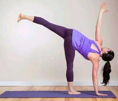 2、将右髋缓慢向上翻转打开,让身体侧展在一个平面上,与地面保持垂直。左臂垂直地面,左手撑地(或左指尖点地),右臂向上伸展,垂直地面。眼睛看上方(如果困难,眼睛就平视前方)。