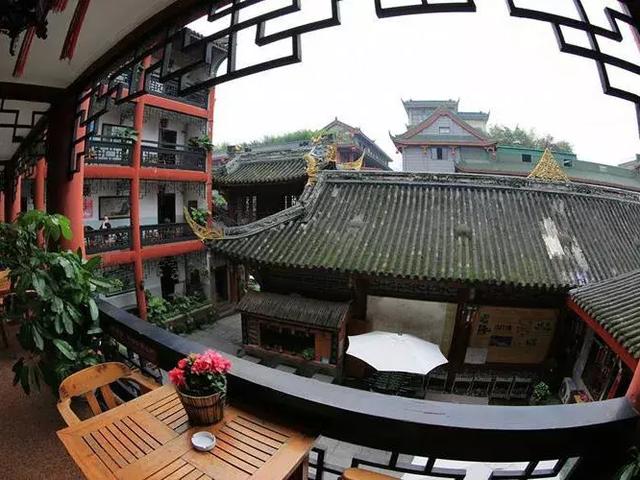 两栋四层楼的房子组成的具有中式传统建筑风格的四合院,闹中取静,花鸟争鸣。古色古香的楼道,雕梁画栋的窗户、栏杆都与这条古街相互辉映。