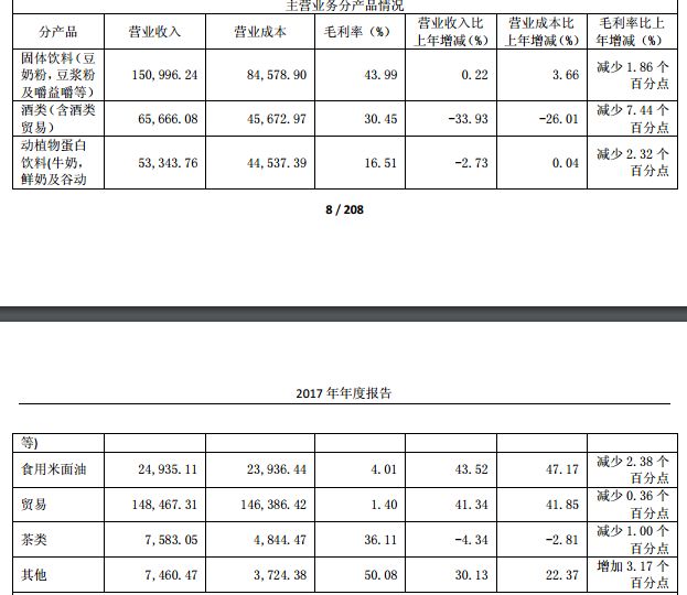 固体饮料(豆奶粉,豆浆粉及嚼益嚼等)实行深度承包,销售渠道下沉,营业收入较为稳定, 略有增长,全年营业收入为150,996.24万元,比上年增长0.22%;